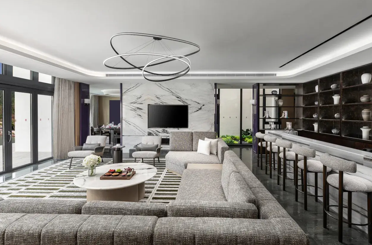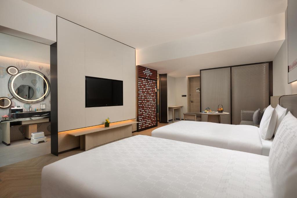 В номере: Wi-Fi, кондиционер, сейф, шкаф, телевизор со спутниковыми каналами, гладильные принадлежности, ванна и душ, фен, брендовые туалетно-косметические принадлежности, халат, тапочки, «вьетнамки» для пляжа, телефон, приветственная тарелка с фруктами, бесплатный пополняемый мини-бар и бутилированная вода, электрочайник, набор для приготовления элитного чая (листовой китайский чай, чайный сервиз), зонт, сушилка для одежды (на балконе), ванна-джакузи (в некоторых номерах/сьютах), ежедневная уборка.