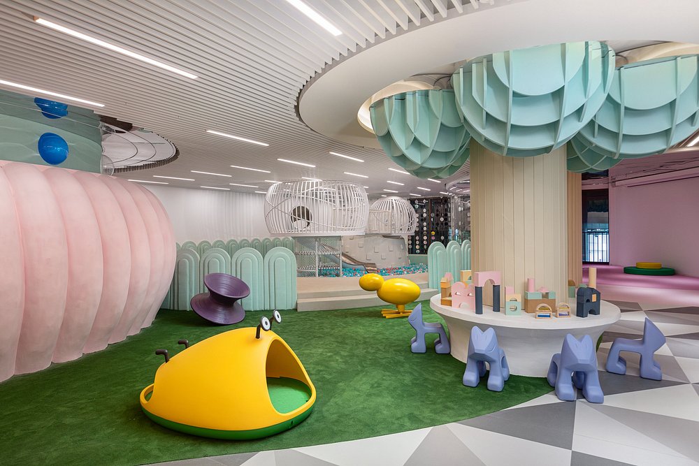 2-8 этаж, семейный номер с дизайном в «мультяшном» стиле с угловым балконом и панорамными окнами, кровать king size, игровая зона с вигвамом, гостевая зона с большим диваном, ванная комната с душевой кабиной, туалетный столик, меблированный балкон с ванной, вид на океан/ на озеро;