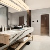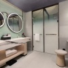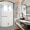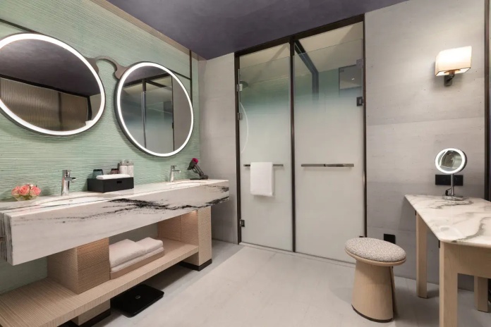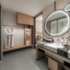 * В части номеров и сьютов ванная комната с раковиной, ванной, душевой кабиной и туалетом отделена от жилой зоны стеклянной матовой перегородкой.