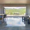 Вилла с 2-мя спальнями (часть виллы с общим пространством в совместном пользовании): двуспальные кровати king size (или двуспальная кровать king size и 2 односпальные кровати), собственные гардеробные и 2 ванные комнаты с душевыми кабинами и ванной, сауна, гостиная, обеденная зона и полностью укомплектованная кухня (плита, СВЧ-печь, раковина, посудомоечная машина, вытяжка, холодильник, кофемашина и пр.), меблированная терраса, балкон с ванной, бассейн, вид на горы, озеро и море;