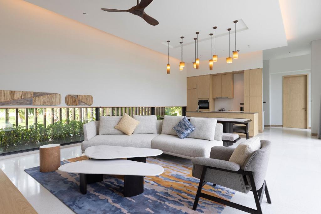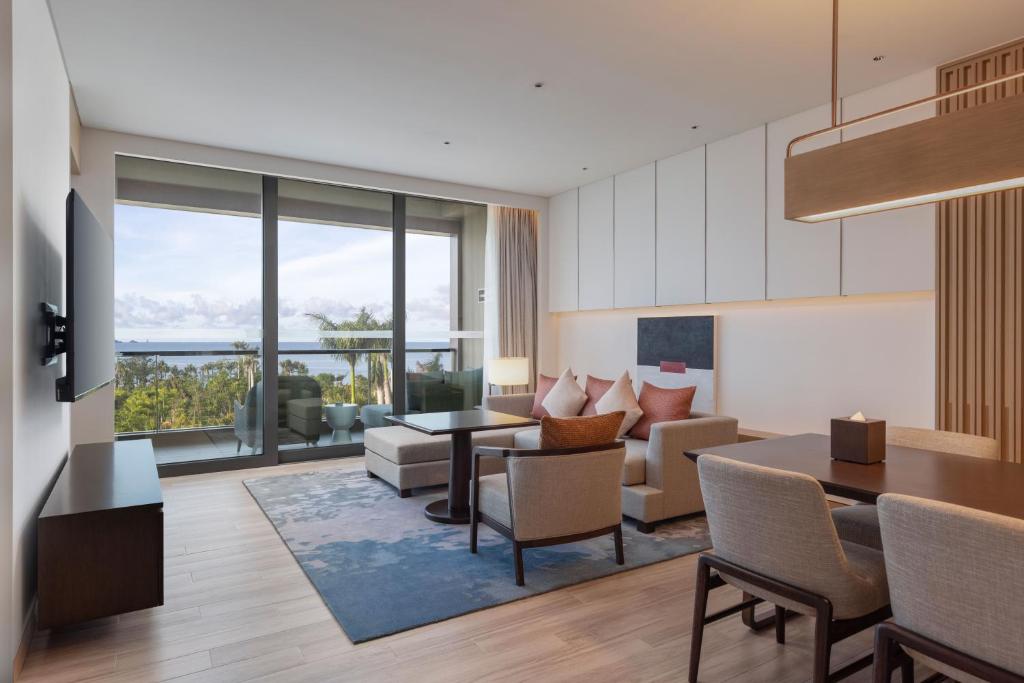 Клубный люкс*: спальня с двуспальной кроватью king-size, ванная комната в спа-стиле, отдельная гостиная с диваном-кроватью, обеденная зона и мини-кухня, меблированный балкон; панорамный вид на океан с верхних этажей; есть смежный номер с двумя двуспальными кроватями;