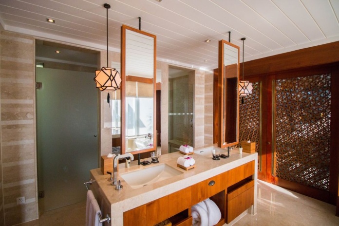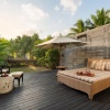 Пляжная вилла-дуплекс с «французскими» окнами от пола до потолка: на 2 этаже – главная спальня с двуспальной кроватью king size и гостевой зоной, ванная комната с ванной и душем на открытом воздухе; на 1 этаже – спальня с 2-мя односпальными кроватями, ванная комната с ванной и душевой кабиной, гостиная с обеденной зоной на 4 персоны, выход на меблированную террасу-патио (171м²), тропический душ на открытом воздухе, сад с обеденным столом, пейзажный бассейн и беседка-газебо, панорамный вид на океан; есть смежные виллы; эксклюзивные привилегии*; план номера;