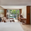 Номер-павильон на 1 этаже, в корпусах вдоль набережной: 1 двуспальная кровать king size, гостевая зона с диваном, ванная комната с душевой кабиной и ванной с оконным проемом на меблированную террасу-патио (25 м²), выход к общему для номеров Pool Pavilion King бассейну; вид на море/ сад/ бассейн; план номера;