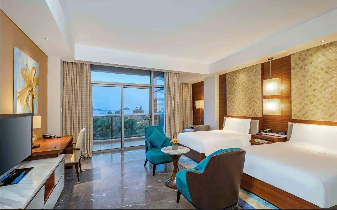 Номер на 3–9 этажах: двуспальная или 2 односпальные кровати, ванная комната с ванной и душем, балкон, боковой вид на океан под более широким углом обзора (90-120°);