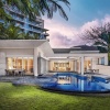 Отдельная вилла c 2-мя спальнями: стеклянные двери от пола до потолка, в спальнях – двуспальная кровать и 2 односпальные кровати, в каждой – собственные ванные комнаты с ванной и душем; гостиная с зоной отдыха, обеденная зона, кухня, кабинет, комната для спа-процедур, меблированная терраса с обеденным столом, сад, собственный бассейн с постоянной температурой воды (глубина 1, 25 м, длина 12 м), душ на свежем воздухе, вид на сад;
