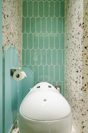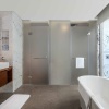 ** В части номеров ванная комната отделяется от жилого помещения прозрачной сдвижной дверью.