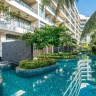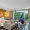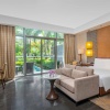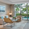 Двухкомнатный сьют на 1 этаже: спальня с двуспальной кроватью king-size, ванная комната с ванной и душем, гостиная, меблированная терраса и бассейн с прямым доступом к лагуне, окружающей корпус T2, вид на сад/лагуну;