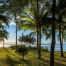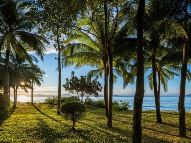 Сьют открытой планировки на 1 этаже: спальня с 1-ой двуспальной и 2-мя односпальными кроватями отделена перегородкой от зоны гостиной, ванная комната с душем и ванной, окна от пола до потолка, вид на сад/ на океан.