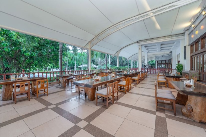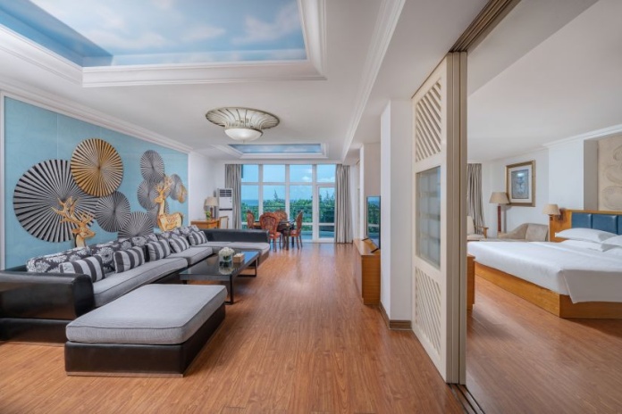 Sanya Huayuan Hot Spring Seaview Resort — курортный отель группы Green Development Group, расположенный в престижной части 22-километрового «Коридора мечты с кокосами» в бухте Санья, всего в 3 минутах ходьбы от пляжа. Отель состоит из основного 5-ти этажного здания и трёх вилл.