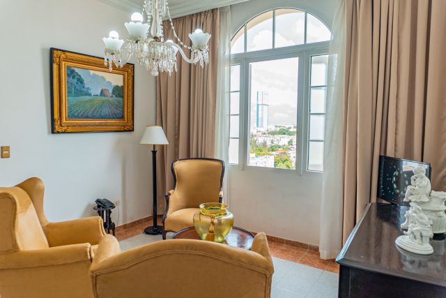 Отель Roc Presidente с потрясающим видом на океан расположен в 5 км от исторического центра Гаваны и состоит из одного 10-этажного здания.