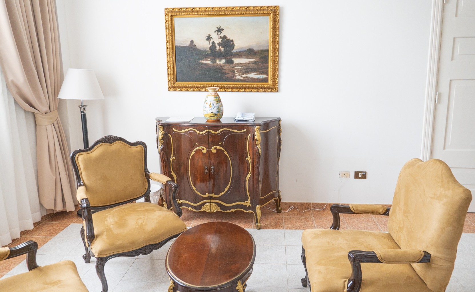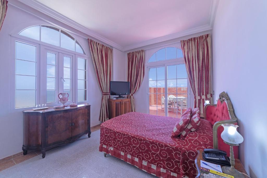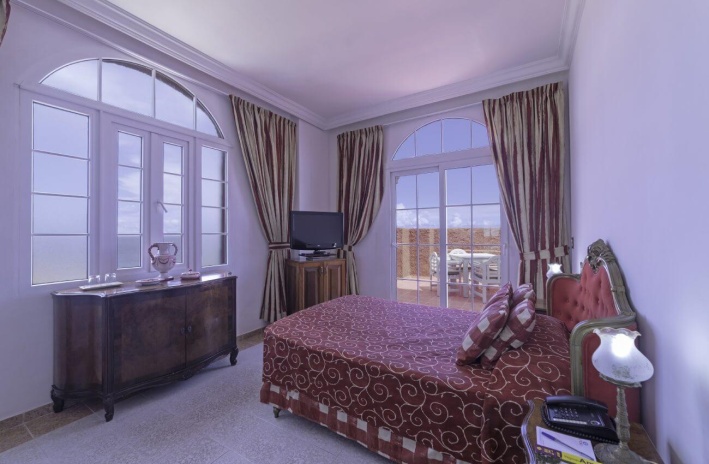 Спальня с двуспальной кроватью king-size, отдельной гостиной комнатой, полностью оборудованная ванная комната, гостевой туалет, меблированная терраса, вид на море;