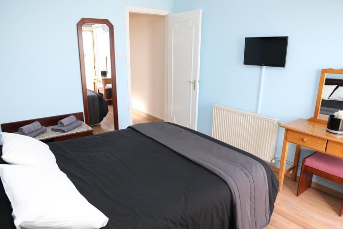 One Bedroom Apartment - 42 кв.м. ,Спальня и гостиная, мини-кухня ( микроволновая печь, плитка, чайник, кастрюли, тарелки, ложки, ножи, раковина).