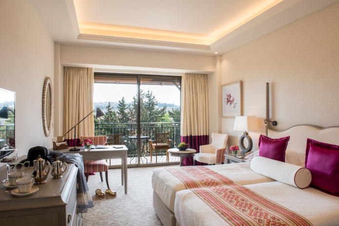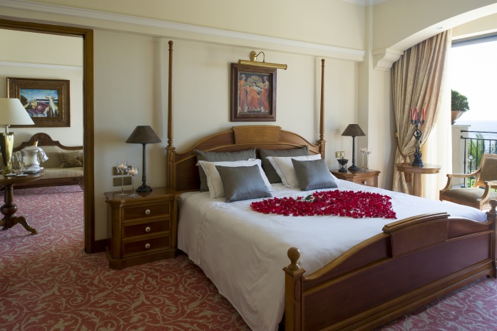 Deluxe Bedroom (34 кв.м+балкон, максимальное размещение – 3 человека, внутренний вид ,вид на море или боковой вид на море). Номер с двуспальной кроватью или двумя односпальными кроватями, оборудованным балконом или террасой, ванной комнатой из мрамора с ванной, ручным душем, туалетом, биде и увеличительным зеркалом. На полу – мраморное или ковровое покрытие. Также в номере: мини-бар, телефон с голосовой почтой, ЖК-телевизор со спутниковыми каналами, фен, роскошные туалетные принадлежности, банные халаты и тапочки, свежие фрукты и минеральная вода по прибытии, бесплатный Wi-Fi.