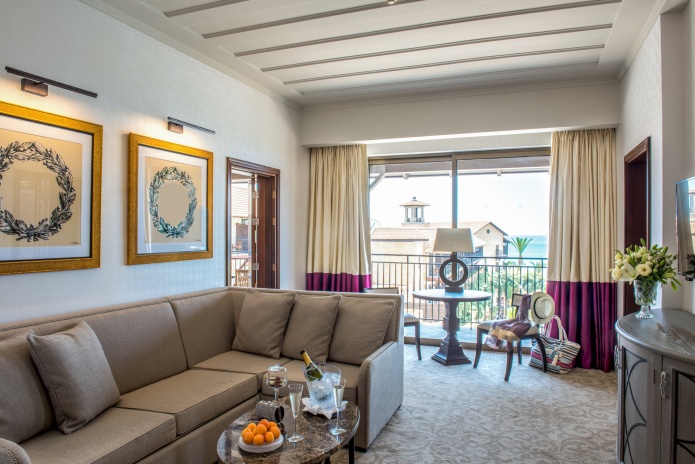 One Bedroom Junior Suite (67 кв.м, максимальное размещение – 2+2). Сьют с одной спальней, просторной гостиной, ванной комнатой и балконом с потрясающим видом на море. В номере: отдельный балкон, полностью укомплектованный мини-бар и кофемашина Nespresso (запасы пополняются ежедневно), телефон с прямым набором номера и услугой «голосовая почта», двойной письменный стол и туалетный столик, просторная гостиная, сейф, фен, ковровое покрытие, лампы для чтения у кровати, автоматическое управление освещением в номере, включая декоративную подсветку и ночные светильники, разъемы с USB-портами, двустворчатый шкаф для одежды с вешалкой в виде рейки с подсветкой, электронная функция «Не беспокоить», высокоскоростной беспроводной интернет (с дополнительным оборудованием), кровать (тип кровати: двуспальная кровать или две односпальные кровати), меню подушек, зеркало для макияжа и бритья с подсветкой, дамская туалетная комната с душем, смежная со спальней мраморная ванная комната с ванной, гигиеническим душем, туалетом, биде, местом для хранения личных вещей и душевой кабиной, туалетные принадлежности Molton Brown, мягкие махровые халаты и тапочки, мочалка, телевизор Smart TV (диагональ 43 дюйма) со спутниковыми каналами (возможность подключения планшетов и смартфонов), бутылка домашнего красного вина, корзинка с отборными фруктами и минеральная вода по прибытии, бесплатная ежедневная газета, индивидуальное оформление заезда (май–октябрь).