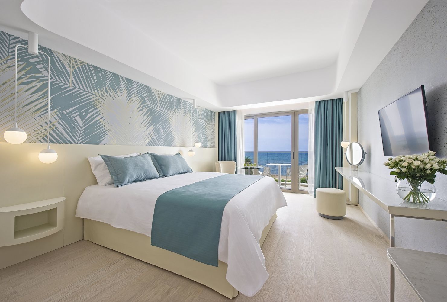 Deluxe Room Sea View (33 м², максимальное размещение - 3 человека + ребенок до 2 лет) – номер с видом на море, 1 двуспальной кроватью и 1 односпальной кроватью, ванной комнатой со всеми современными ванными и душевыми принадлежностями. Дополнительное спальное место для взрослого - диван-кровать. При размещении с младенцем предоставляется детская кроватка.
