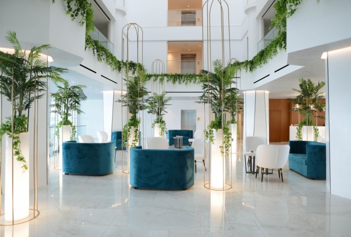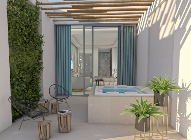 Junior Suite Inland View And Outdoor Jacuzzi (33 м² + большой балкон с джакузи, максимальное размещение - 3 человека + ребенок до 2 лет) – номер с видом на отель и джакузи под открытым небом на террасе / балконе площадью 11,5 - 27 м². Просторный номер с 1 двуспальной кроватью и 1 односпальной кроватью. При размещении с младенцем предоставляется детская кроватка.