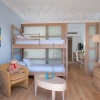 2 спальные зоны (раздвижная дверь между ними): двуспальная кровать king-size и 2 односпальные кровати или двухъярусная кровать, ванная комната (комбинация ванна-душ), балкон, вид на море;