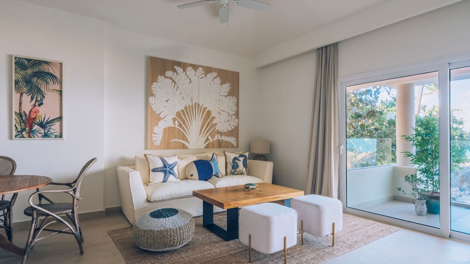 Coral Level at Iberostar Selection Bavaro – комплекс бунгало в окружении пышной растительности, отель с прямым выходом на пляж.