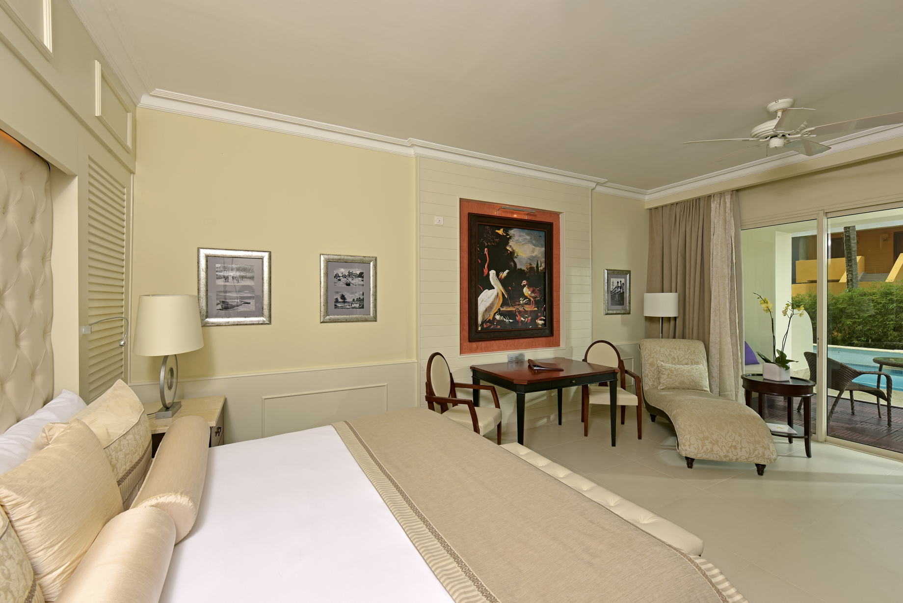 • номера Suite Swim Out (33 м², макс.2 взр.) с прямым выходом к бассейну с террасы номера, кровать размера king-size, ванная комната (с ванной и душем);