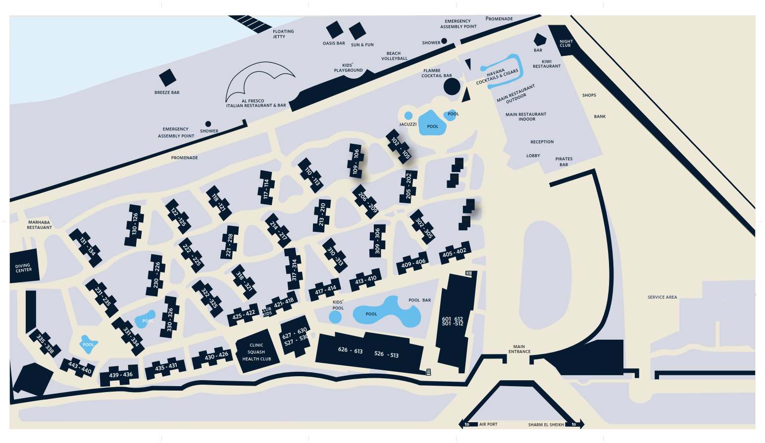 Jaz Fayrouz расположен на берегу моря и состоит из главного одноэтажного здания и комплекса бунгало. Отель предлагает спокойный и комфортный отдых в одном из самых красивых уголков Шарм-эль-Шейха, обеспечивая высокое качество сервиса и разнообразие услуг для гостей всех возрастов. На территории отеля открытые бассейны, детский клуб, к услугам гостей частный песчаный пляж протяжённостью 800 м и доступ к аквапарку Cleo Park.