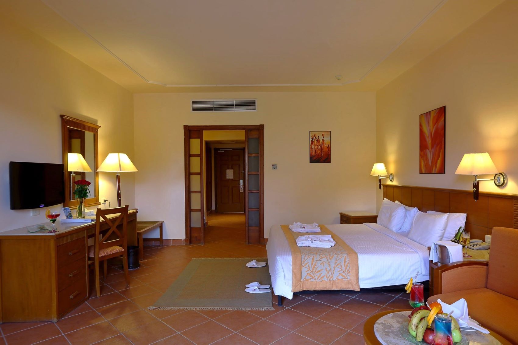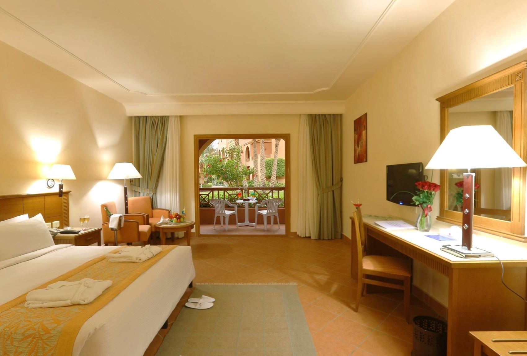 В номере: Wi-Fi, кондиционер, сейф, шкаф, рабочий стол, ЖК-телевизор со спутниковыми каналами, фен, бесплатные туалетно-косметические принадлежности, халат и тапочки (VIP), телефон, мини-бар (платно), электрочайник, набор для приготовления чая/кофе, бесплатные бутилированная вода, столик и кресла на балконе, ежедневная уборка.