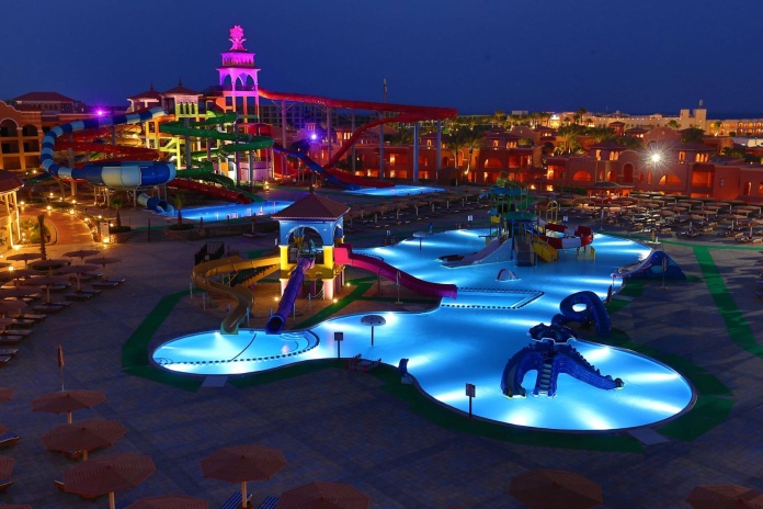 К услугам гостей: аквапарк для взрослых и детей с водными горками и бассейнами, два открытых бассейна, ресторан, четыре бара, детский клуб, анимация и волейбольная площадка.