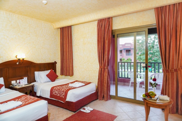Номер с 1-й двуспальной/ 2-мя односпальными кроватями и гостевым уголком, ванная комната с душевой кабиной, меблированный балкон, вид на бассейн;