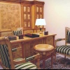 Королевский сьют расположен на верхнем этаже: 2 отдельные спальни с кроватями king size и собственными ваннами (одна с душевой, другая – с ванной-джакузи), гардеробная, гостиная, столовая, оборудованная кухня, кабинет с рабочим столом и необходимым подключением интернета и телефонии, библиотека, просторная меблированная терраса, вид на бассейн, отдельный вход с лифтом, услуги дворецкого;
