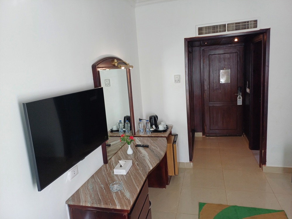 В номере: Wi-Fi, кондиционер, сейф, телевизор, спутниковое телевидение (есть канал на русском языке), телефон, банно-косметические принадлежности, фен, халат и тапочки (не во всех номерах), электрочайник, набор для приготовления чая и кофе, мини-бар (платно), бутилированная вода,