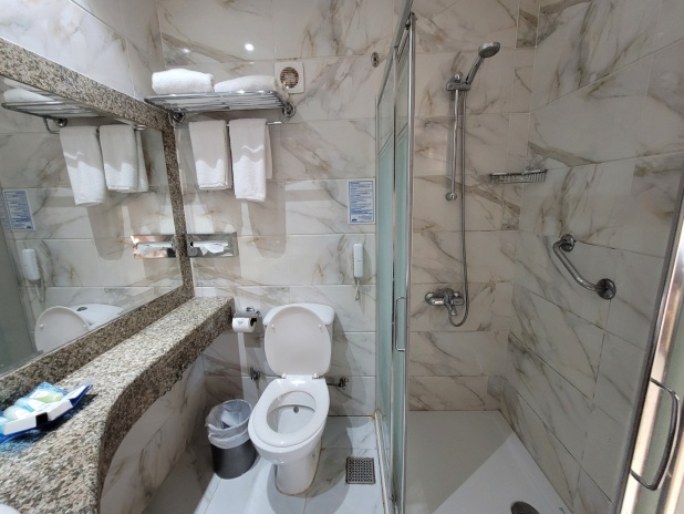 * наличие ванны в ванной комнате зависит от конкретного корпуса или года реновации номера (в некоторых обновленных номерах вместо ванн установлены душевые кабины).
