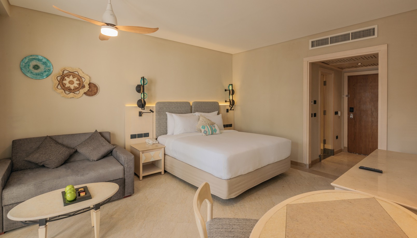 В номерах: кондиционер, элетрический чайник, набор для приготовления чая/кофе, мини-бар (платно), телефон, утюг и гладильная доска, сейф, телевизор, питьевая бутилированная вода ежедневно, полотенца для бассейна/пляжа в номере (их меняют по запросу во время ежедневной уборки номера, штра при утере полотенца), фен, банные принадлежности.