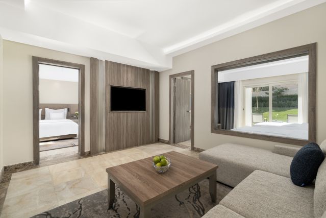На территории комплекса — несколько бассейнов, рестораны, бары, спа-центр, спортзал и развлечения. Номера просторные, с классическим интерьером и современными удобствами. Есть мини-клуб и услуги для детей, но в целом отель больше ориентирован на спокойный отдых.