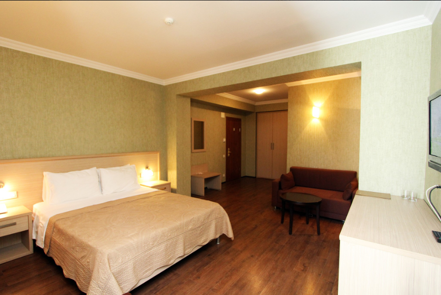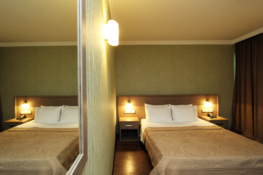 Suite room 40 кв м 2 односпальные кровати и 2 двуспальные кровати. В номере есть отдельная гостиная зона.