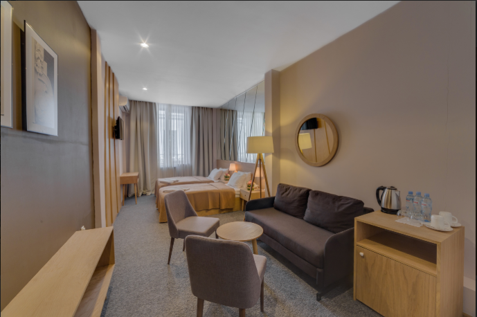 Panorama suite 37 кв.м люкс с гостиной и панорамным видом, двуспальная кровать, диваны