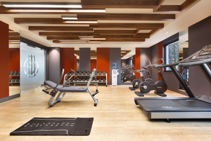 Фитнес–зал с оборудованием для кардио и силовых тренировок.