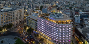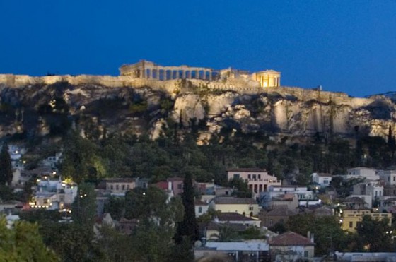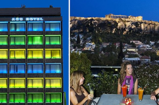 С крыши отеля открывается панорамный вид на город, Акрополь и старые районы Афин.