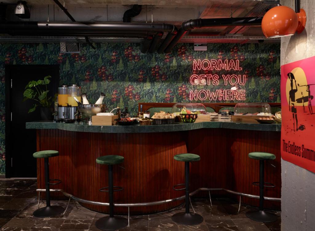 индустриальные элементы. Есть терраса на крыше отеля с джакузи, бар и ресторан к услугам гостей.