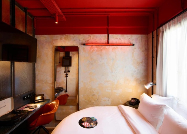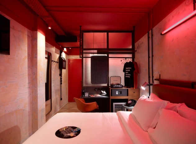В дизайне отеля представлен ретро-стиль с тщательно подобранными винтажными вещами, а также яркие цвета и