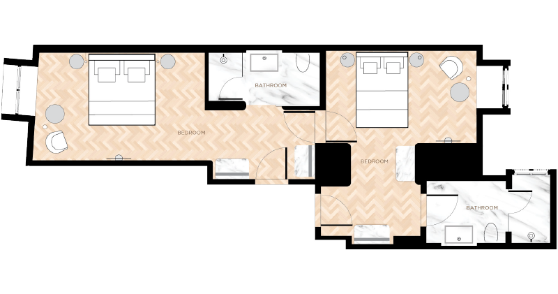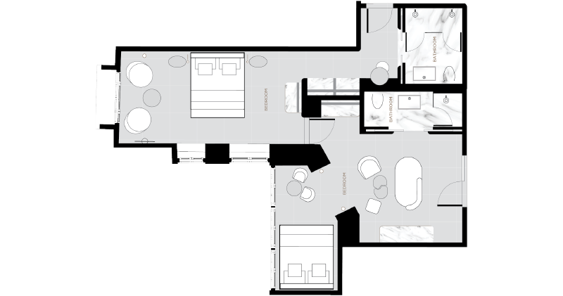 Совмещённые номера Metropolis Junior Suite и Deluxe, балкон в некоторых номерах, две отдельные и просторные спальни с ванными комнатами, см.план номера;