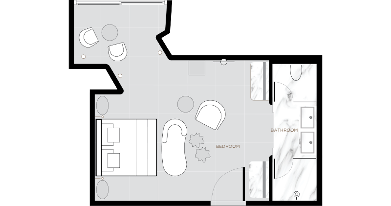 В номерах: кровать и мебель по индивидуальному заказу, набор для приготовления чая/кофе, шкаф, банные принадлежности, мини-бар, чайник, кофе-машина Nespresso, телефон, смарт ТВ, сейф, Wi-Fi, кондиционер, халаты, тапочки, люксовые банные принадлежности, зеркало для макияжа, фен, меню подушек, утюг и гладильная доска (по запросу), WhatsApp консьерж-сервис.