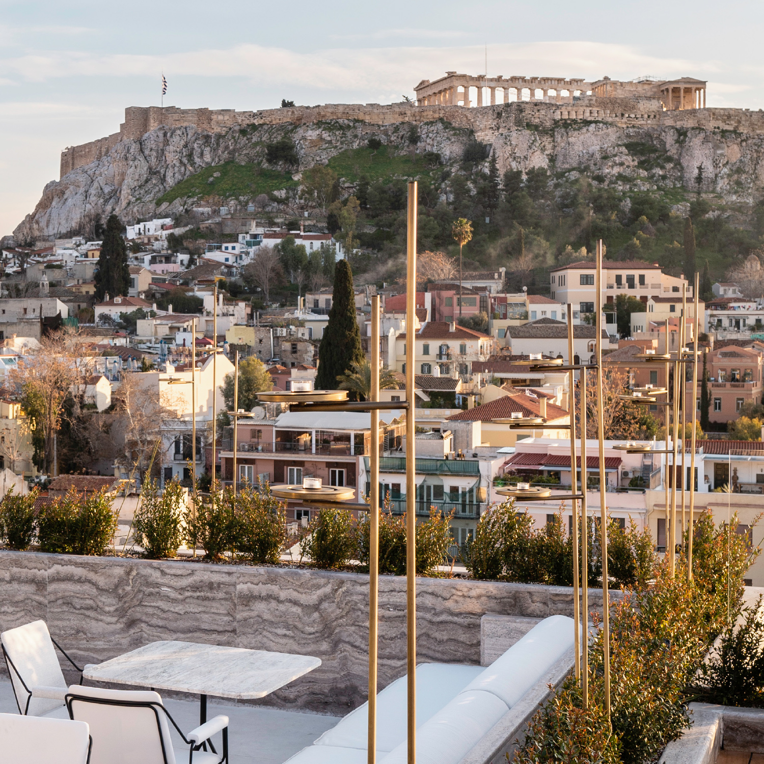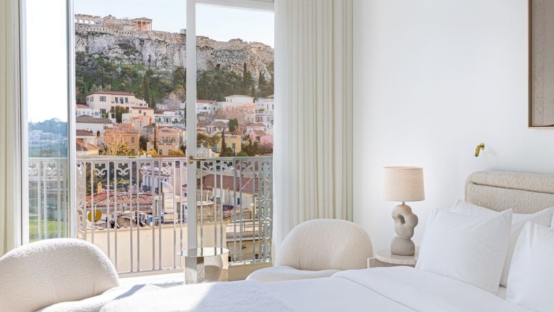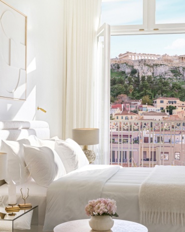 Расположены на третьем и четвёртых этажах, двуспальная кровать, гостиная зона с креслами, ванная комната с ванной и душем, балкон, вид на Акрополь из спальни и ванной комнаты, возможно совместить с номером Acropolis Junior Suite, см.план номера;