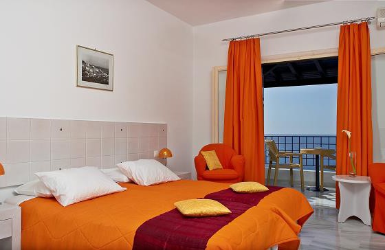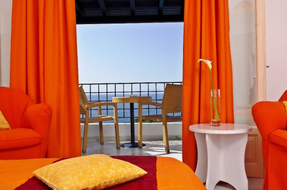 Всего в отеле 41 номер, двух типов — Standard и Suite. STANDARD ROOM 18 кв. м, балкон с панорамным видом на море. SUITE 25 кв м. В номере есть гостиная и спальня сдвухспальной кроватью или двумя односпальными, журнальный столик, диван, туалетное зеркало.