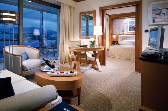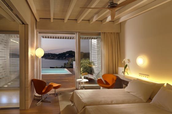 В отеле 126 номеров различных категорий, включая Deluxe Room 26 м2., Grand Deluxe Room 41 м2, Deluxe Suite 54 м2., Excelsior Deluxe Room 41 м2., Excelsior Deluxe Suite 54 м2., Ambassador Suite 82 м2. Bungalow garden view: 40 м2. Bungalow sea view: 40 м2. Bungalow sea view with private pool: 40 м2.Bungalow suite: 80 м2. Bungalow suite with private pool: 80 м2. Bungalow two-bedroom suite: 120 м2. Bungalow two-bedroom suite with pool: 120 м2 В номерах — элегантные интерьеры в теплых тонах, с отделкой из дерева, изящной мебелью и изысканным декором, с балконов номеров открывается чудесный вид на живописный залив Сароникос. В каждом номере имеется кондиционер, плазменный телевизор со спутниковыми каналами, прямой телефон с голосовой почтой, доступ в Интернет, сейф, мини-бар, фен.
