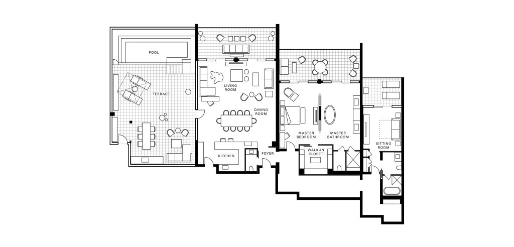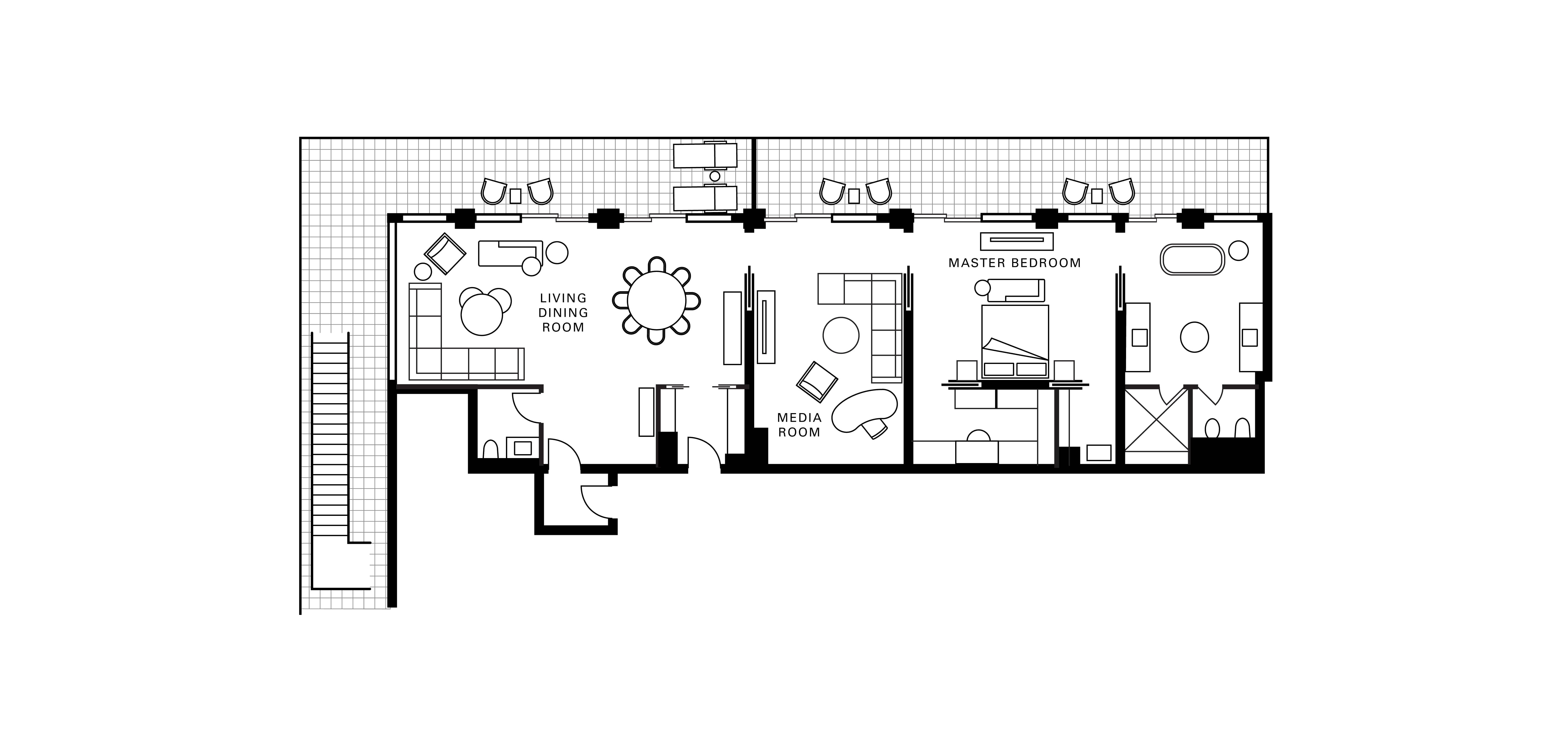 Важно: план этажа является лишь представлением дизайнерской концепции. Размеры и конфигурации комнат могут отличаться в зависимости от номера.
