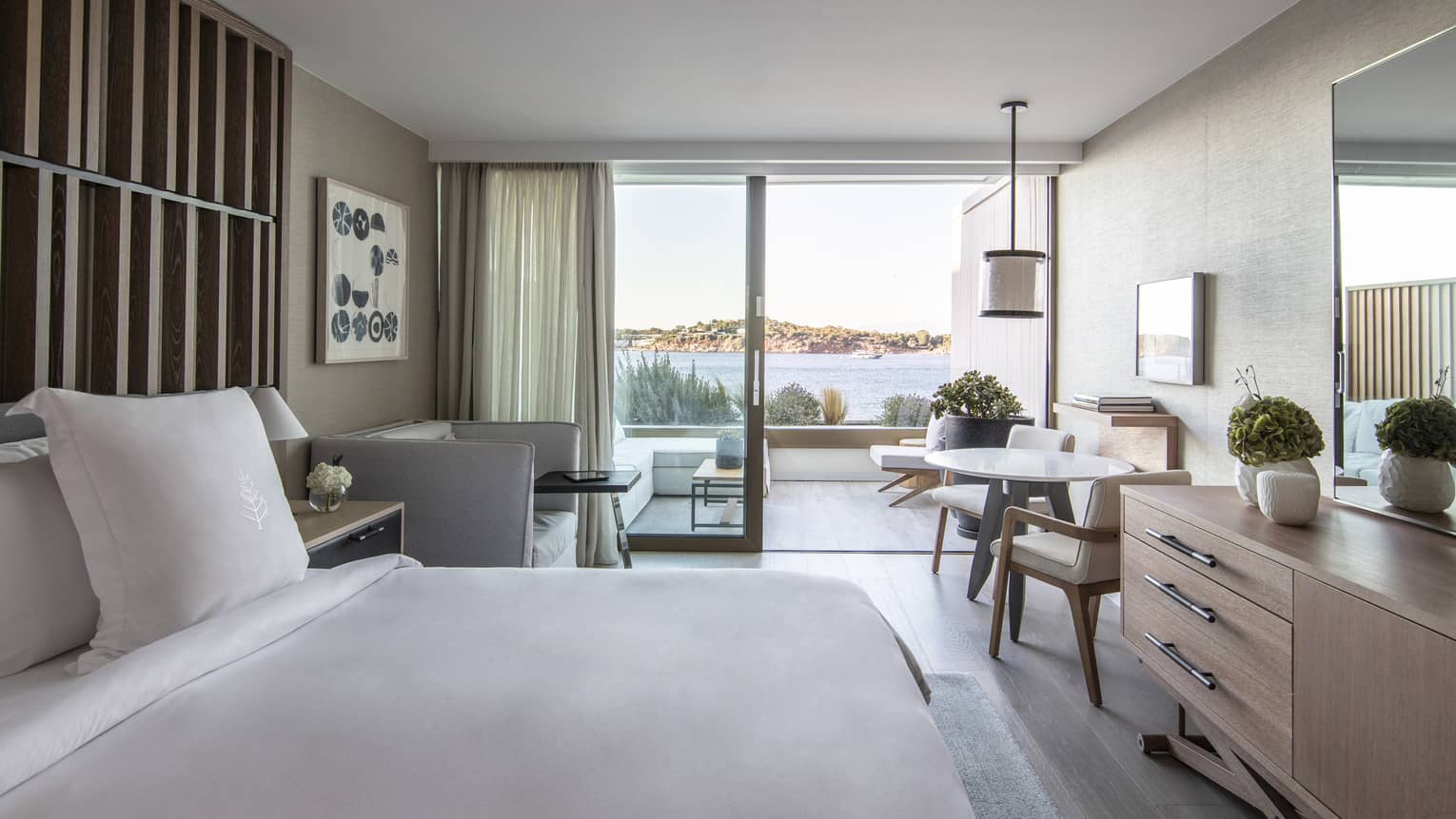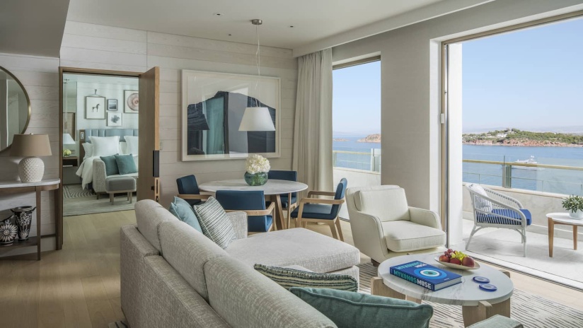 К услугам гостей частный пляжи, спа-центр, открытые бассейны, рестораны высокого уровня, в том числе ресторан с мишленовской звездой – Pelagos, а также доступ к пристани Astir.