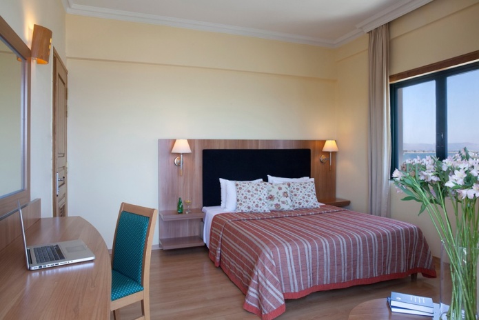 Номера расположены в основном здании, боковой вид на море, двуспальная или 2 односпальные кровати, ванная комната с ванной или душем, балкон или терраса;