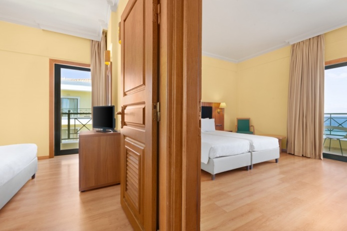 Номера расположены в основном здании (корпус А), боковой вид на море, 2 спальни, двуспальная или 2 односпальные кровати в каждой из спален, гостиная зона, ванная комната с ванной, балкон или терраса;
