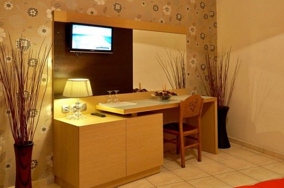 В номерах: кондиционер, отопление, спутниковое телевидение, балкон и собственная ванная комната, фен. Из номеров открывается вид на Метеоры или горный массив Пинд.