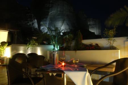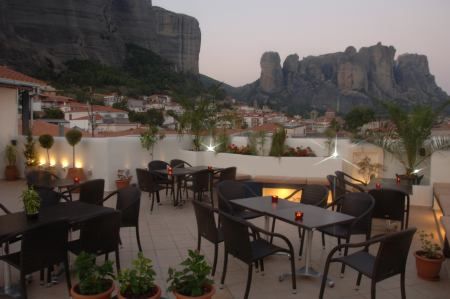 "On the Rocks"- бар-терраса на крыше, откуда открывается панорамный вид на скалы Метеоры. Гостям отеля предлагается завтрак "шведский стол".