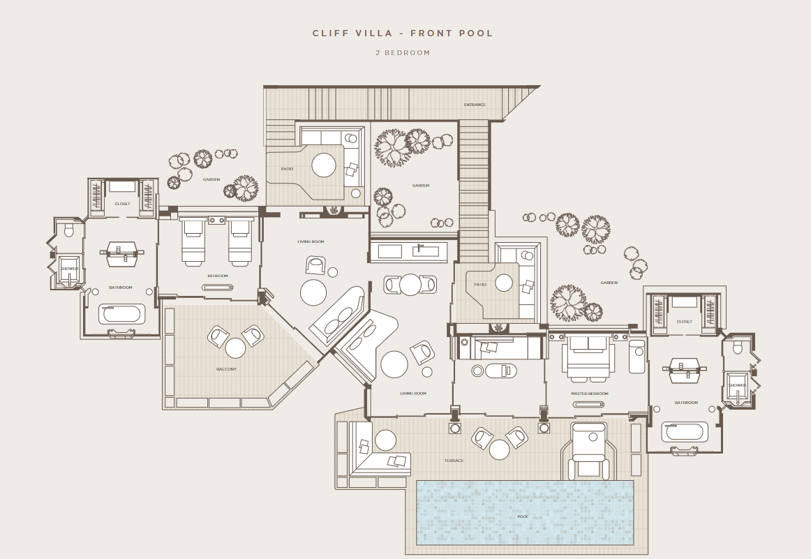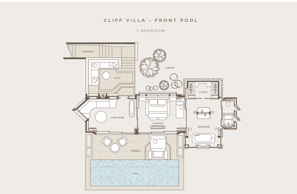 См. план номера Cliff Villa Side Pool, см.план номера Cliff Villa Front Pool.